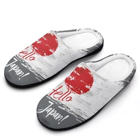 Japanese Flag Hello Japan Cotton Slippers for Women Anti-Skid Winter Warm Closed Toe Slip-on House Shoes