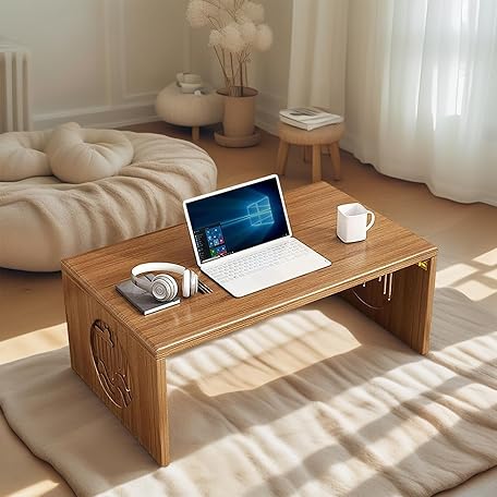 Thông tin sản phẩm Japanese Folding Coffee Table, Foldable Low Coffee Tables, Bamboo Floor Table Desk for Sitting on The Floor, No Assembly, Portable Living Coffee Table (39.4 Inch)