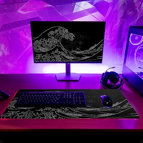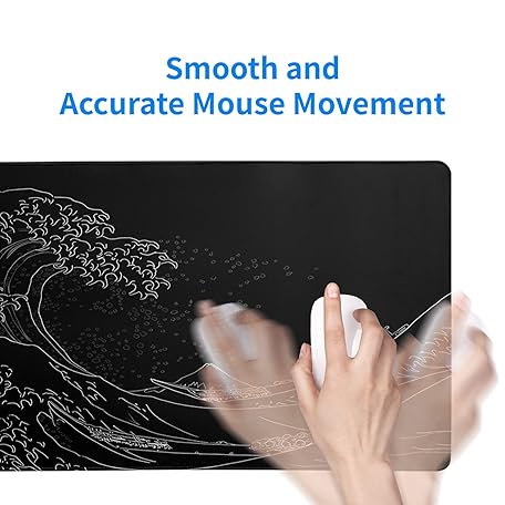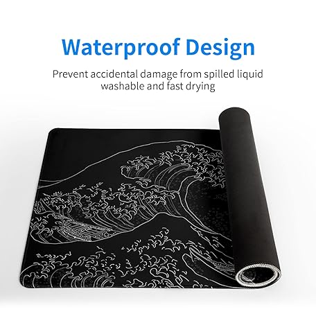 Thông tin sản phẩm Japanese Sea Wave Large Mouse Pad, Anime Black Gaming, Extended Kanagawa Mat Desk Pad, 3mm Thick Long Non-Slip Rubber Base Mice Pad, 31.5 X 11.8 Inch
