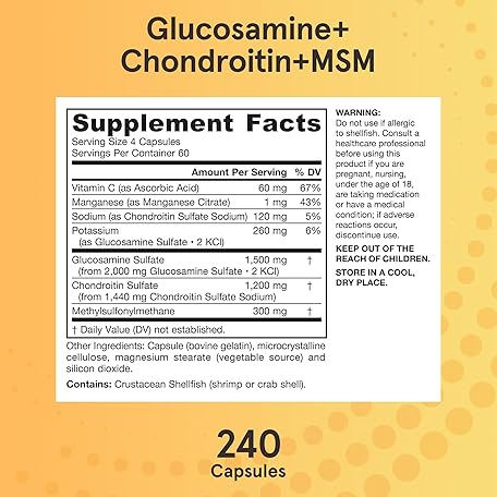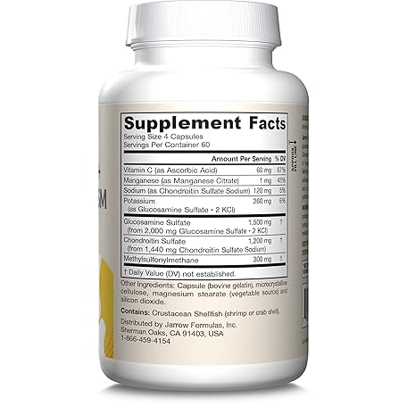 Thông tin sản phẩm Jarrow Formulas Glucosamine, Chondroitin, and MSM Capsules; Joint Support Supplement with Vitamin C and Manganese, Bone & Joint Health, 240 Capsules, 60 Day Supply