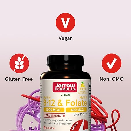 Thông tin sản phẩm Jarrow Formulas Methyl B-12 1000 MCG and Methyl Folate 400 MCG, Extra Strength, Cellular Energy Metabolism and Cardiovascular Health Formula(1) With P-5-P, 100 Chewable Tablets, Up to a 100 Day Supply