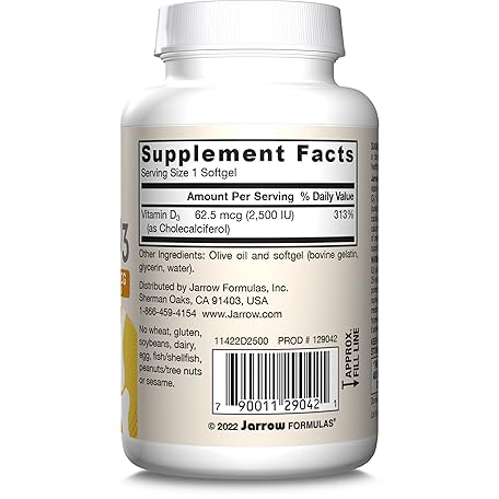 Thông tin sản phẩm Jarrow Formulas Vitamin D3 62.5 mcg (2,500 IU) - 100 Servings (Softgels) - Bone Health, Immune Support & Calcium Metabolism Support - Vitamin D Supplement - D3 Vitamins - 2500 Vitamin D - Gluten Free