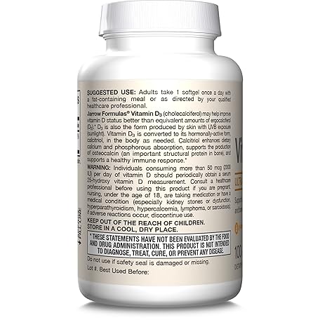 Thương hiệu Jarrow Formulas là cái tên nổi tiếng được rất nhiều khách hàng trên thế giới chọn lựa. Với kiểu dáng đẹp mắt, sang trọng, sản phẩm Jarrow Formulas Vitamin D3 62.5 mcg (2,500 IU) - 100 Servings (Softgels) - Bone Health, Immune Support & Calcium Metabolism Support - Vitamin D Supplement - D3 Vitamins - 2500 Vitamin D - Gluten Free là sự lựa chọn hoàn hảo nếu bạn đang tìm mua một món cho riêng mình.