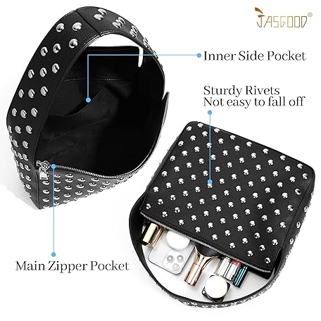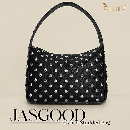 JASGOOD Studded Purse Black Shoulder Bag Vegan Leather Designer Punk Handbags