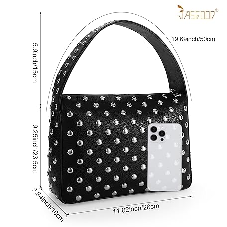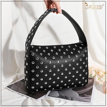 • JASGOOD Studded Purse Black Shoulder Bag Vegan Leather Designer Punk Handbags