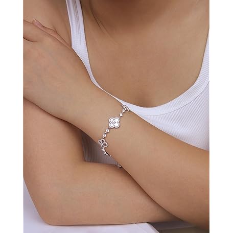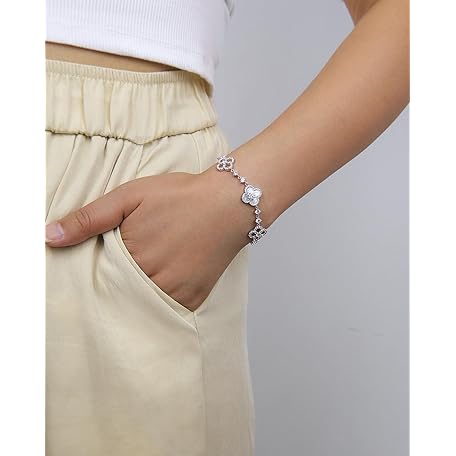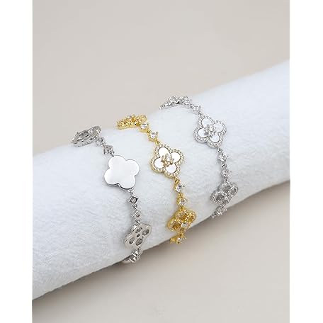 JA.S.JR 18K Gold Plated Clover Bracelets for Women | Flower Four Leaf Clover Bracelet