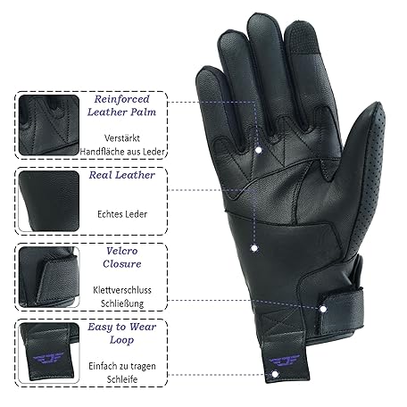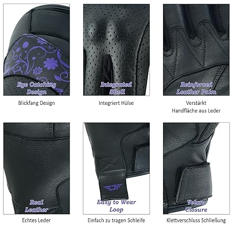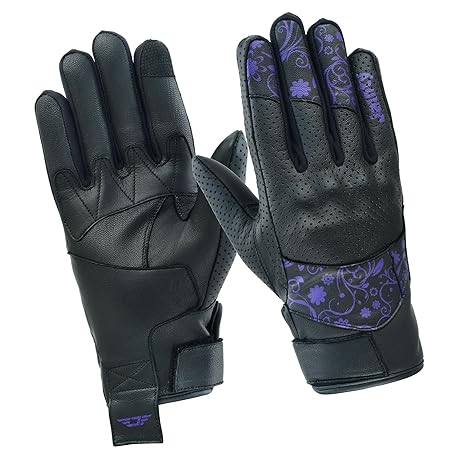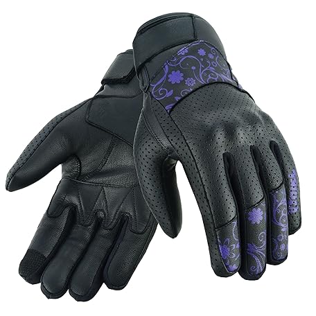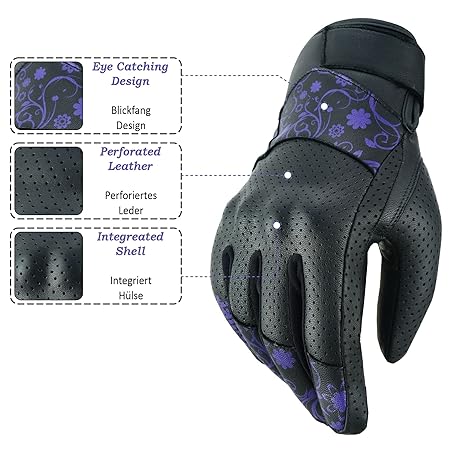 JAUNTY Motorcycle Gloves for Women Leather Riding Touchscreen Gloves for Ladies with Hard Knuckle Perforated Breathable Biker, ATV BMX, Combat Motocross, Riding Racing (Purple, Medium)