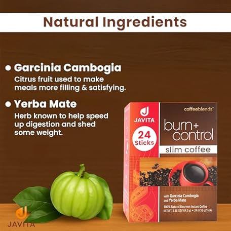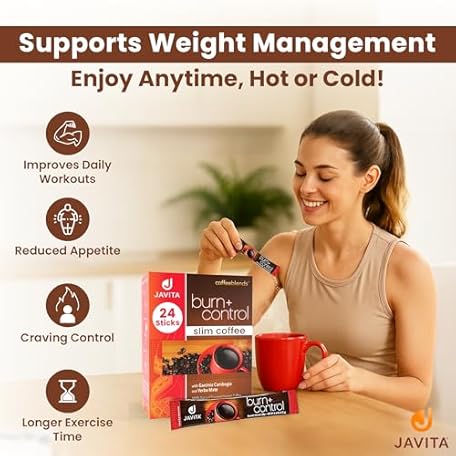 Thông tin sản phẩm Javita Burn + Control Instant Coffee – Smooth Arabica, Robusta Blend with Garcinia & Yerba Mate – Supports Metabolism & Daily Energy – Convenient Slim-Style Coffee Mix (1 box/24 serv.)