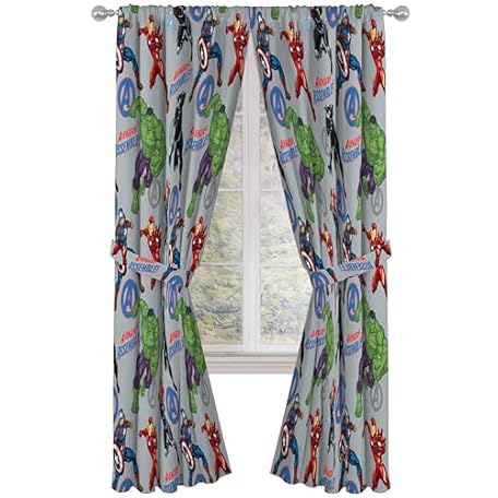 • Jay Franco Window Curtains for Kids Bedroom 4-Piece Drape Set with 2 Tiebacks, Grey - Avengers, 42" W x 84" L (Pack of 2)