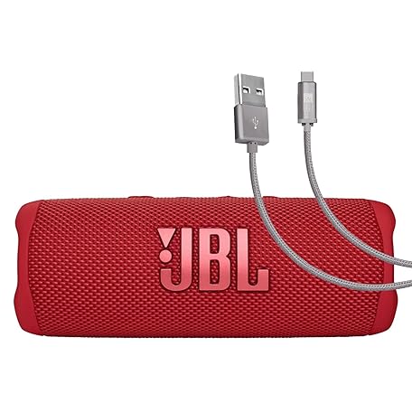• JBL Flip 6 (Red) + Bundle with Case Logic Braided USB Type-C Charge & Sync (6 feet, Gray)