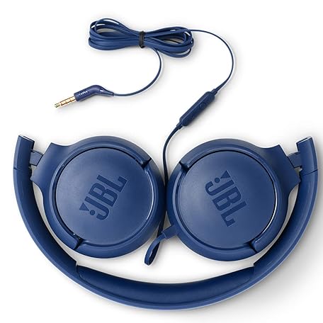 Thông tin sản phẩm JBL Tune 500 - Wired on-ear headphones, JBL Pure Bass Sound, 1-button remote/mic, Tangle-free flat cable, Lightweight and foldable design, Ask Siri or Google Now (Blue)