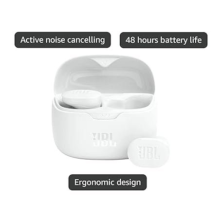 Thông tin sản phẩm JBL Tune Buds - True wireless Noise Cancelling earbuds, JBL Pure Bass Sound, Bluetooth 5.3, 4-Mic technology for Crisp, Clear Calls, Up to 48 hours of battery life, Water and dust resistant (White)