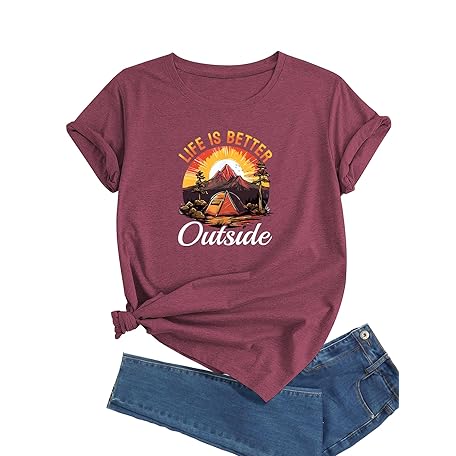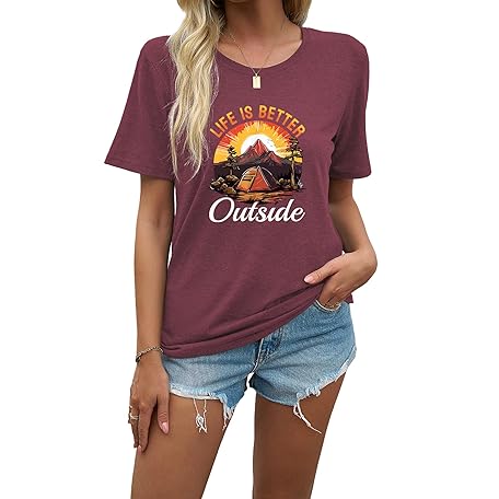 • J&DHUASHA Women's T-Shirt Short Sleeve Crewneck Graphic Tees Printed Casual Summer Tops