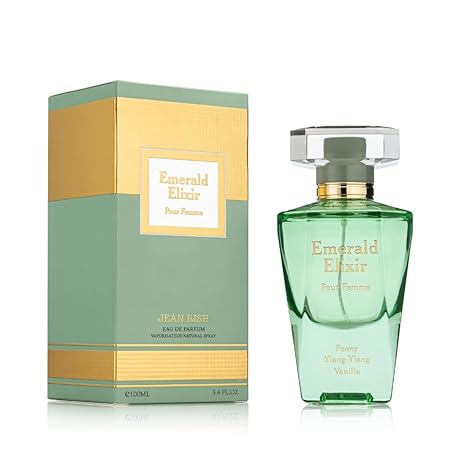 Jean Rish Emerald Elixir, Eau De Parfum for Women (3.4 Fl Oz / 100ml) with Peony, Ylang Ylang, Vanilla - Long Lasting and Luxury Fragrance