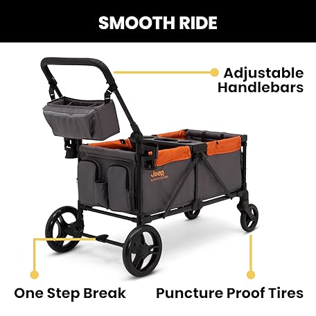 Thông tin sản phẩm Jeep Sport All-Terrain Stroller Wagon by Delta Children - Includes Canopy, Parent Organizer, Adjustable Handlebar, Snack Tray & Cup Holders, Grey/Bonfire