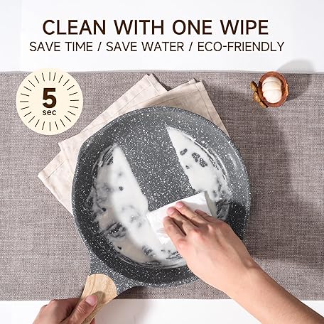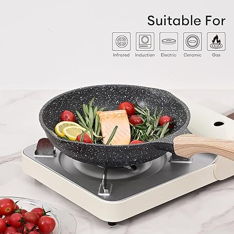 Thông tin sản phẩm JEETEE 8 Inch Nonstick Frying Pan, Stone Coating Cookware, Nonstick Omelette Pan with Heat-Resistant Handle, Compatible with All Stoves (Grey)