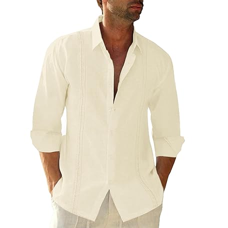 JEKAOYI Button Down Linen Shirts for Men Casual Long Sleeve Regular Fit Cotton Beach Shirts with Pocket