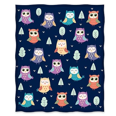 Jekeno Owl Blanket Gifts for Women Men Kids Girls Mom Halloween Christmas Birthday Gifts Home Bedroom Living Room Mother's Day Easter Decor Soft Cozy Lightweight Throw Blankets Navy Blue 50"x60"