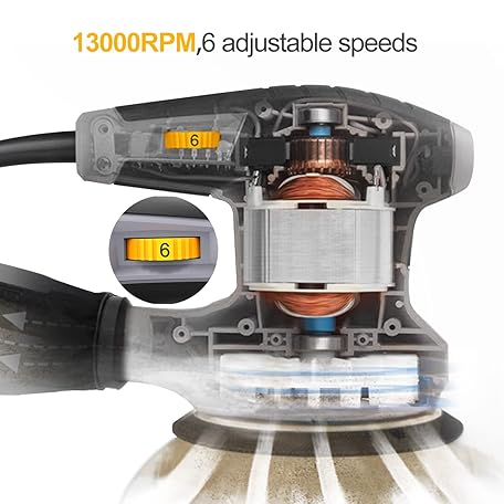 Thông tin sản phẩm Jellas 5-Inch Random Orbital Sander with 18Pcs Sandpapers, 13000RPM 6 Variable Speed Sander Machine, High Performance Dust Collection System for Woodworking, 2.5A, Dust Collection Bag Include - OS280