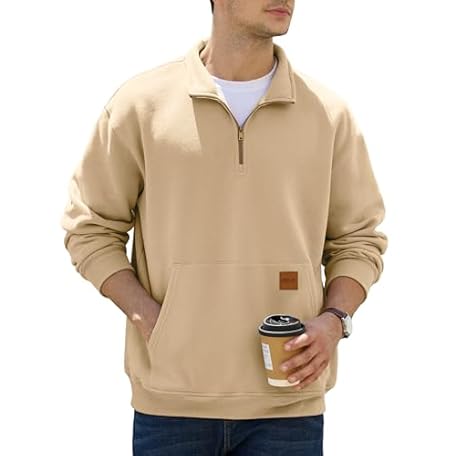 • JEMLDL Men's Fleece Quarter Zip Pullover Sweatshirts Casual Long Sleeve Warm Mock Neck Sweatshirt with Pockets