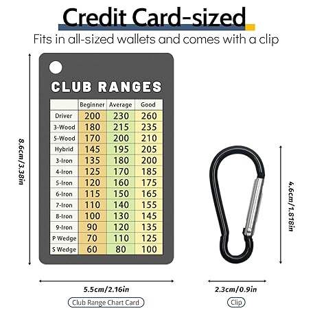 Thông tin sản phẩm Jemzio Golf Club Range Chart Card, Easy Carry with Credit Card Size,Sturdy Golf Yardage Card for Seasoned Golfers, Average, or Beginners