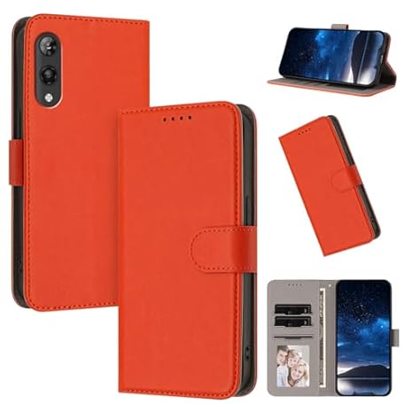Jiajihua Cover Compatible with Rakuten Hand 5G,Compatible with Rakuten Hand 4G Magnetic Closure Wallet Card Slot Flip Kickstand Case Orange