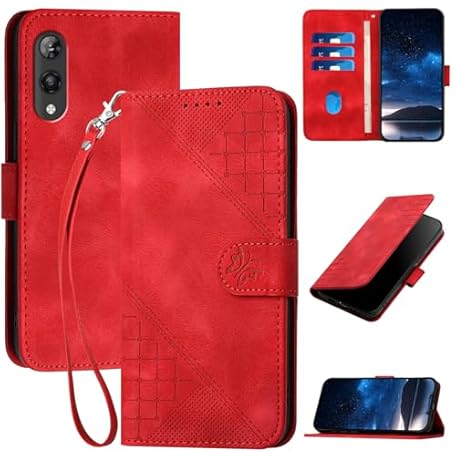 Jiajihua Cover Compatible with Rakuten Hand 5G,Compatible with Rakuten Hand 4G Phone Case Magnetic Closure Card Slot Flip Stand Lanyard Red