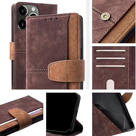 Jiajihua Phone Cover Compatible with Rakuten Hand 4G Kicktand【Card Slot Wallet】【Phone Case】【Magnetic Closure】 Brown