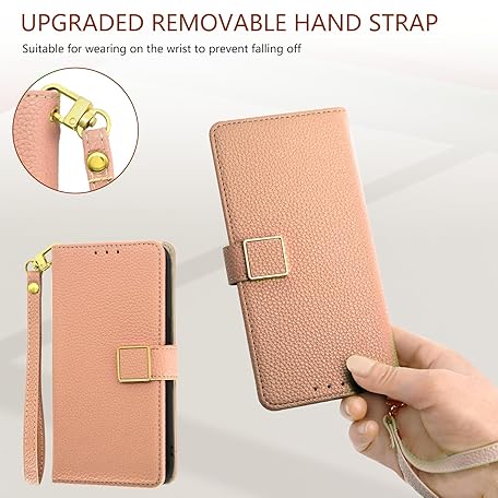 Jiajihua Wallet Cover Compatible with Rakuten Hand 5G Flip Stand Phone Case Magnetic Closure Card Slot Wrist Strap Pink