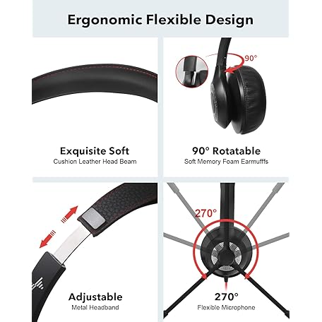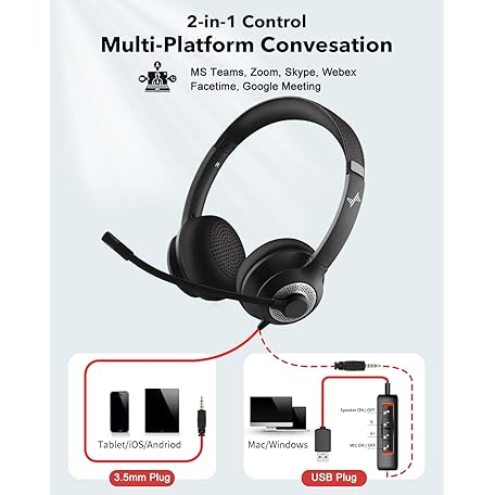 Thông tin sản phẩm USB Headset with Microphone for PC, On-Ear Computer Laptop Headphones with Noise Cancelling Microphone in-line Control for Home Office Online Class Skype Zoom (USB+3.5mm, Black)