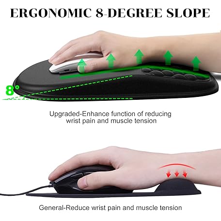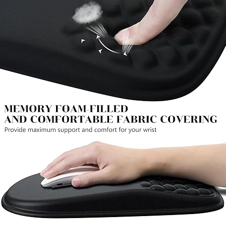 JIKIOU Ergonomic Mouse Pad Wrist Support with Massage Design, Memory Foam Wrist Rest Pain Relief Mousepad with Non-Slip PU Base, Mouse Pads for Wireless Mouse 12x8 inch (Matte Black)
