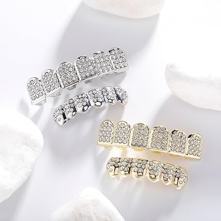 Sản phẩm JINAO Diamond Grills for Your Teeth 14K Gold Plated Iced Out Mouth Teeth Grillz Top Bottom Tooth Caps Hip Hop Bling New Gold Silver Grill for Men Women Costume Jewelry đang được bán với giá ưu đãi là $11.5431 tại nước Mỹ.