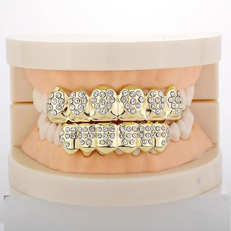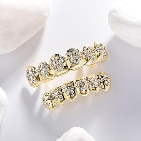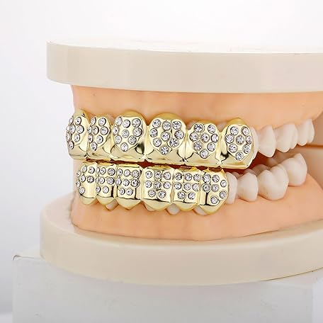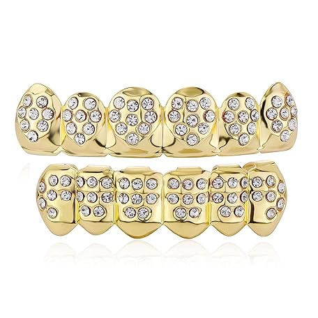 Sản phẩm JINAO Gold Grill 14K Gold Plated Iced Out Teeth Grillz Top Bottom Tooth Caps Hip Hop Bling Gold shiny Mouth Grills for your teeth đang được bán với giá ưu đãi là $11.5431 tại nước Mỹ.