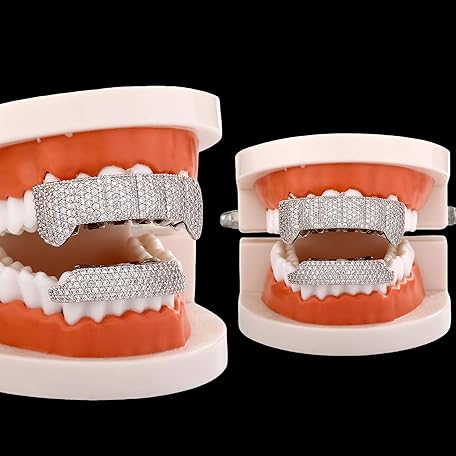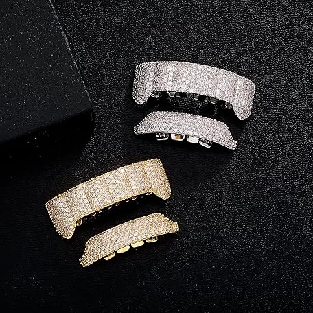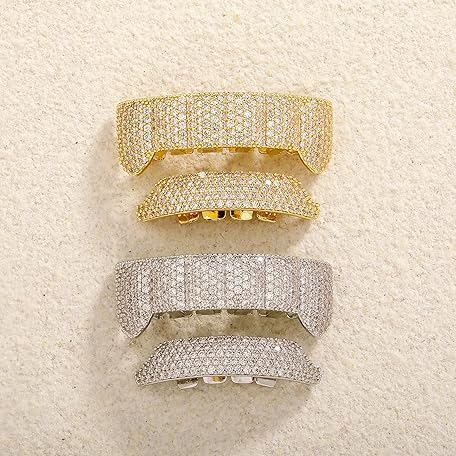 Sản phẩm JINAO Grillz Vampire Teeth Grills for Your Teeth Gold Diamond Grillz for Men and Women 14k Gold Plated Iced Out Flat Tooth Cap for Hip Hop Men Rapper Costume đang được bán với giá ưu đãi là $25.0591 tại nước Mỹ.