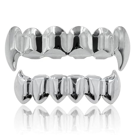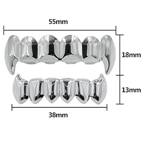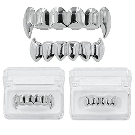 Sản phẩm JINAO Vampire Teeth Fang Grillz 18K Gold Silver Plated Hip Hop Fangs Top Bottom Teeth Grills for Your Teeth Set for Men and Women đang được bán với giá ưu đãi là $11.9791 tại nước Mỹ.