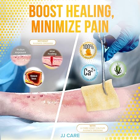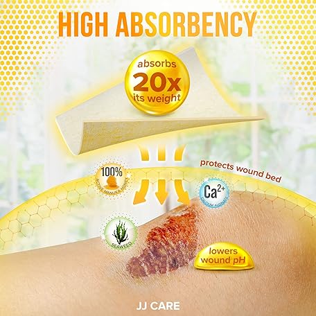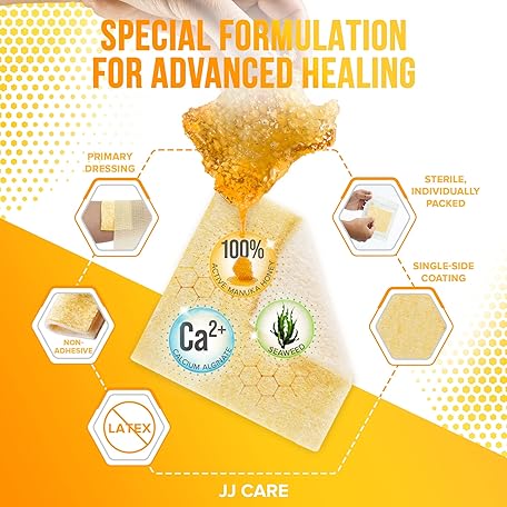 Thông tin sản phẩm JJ CARE Honey Calcium Alginate Dressing 2”x2” [Pack of 20] Honey Wound Dressing with Calcium, Honey Patches for Faster Wound Care, Medical Grade Honey Bandages for Burns, Latex Free