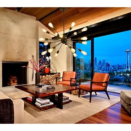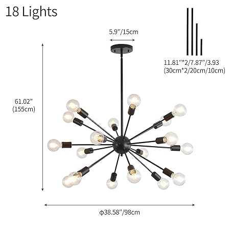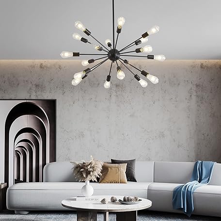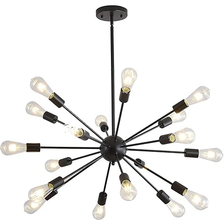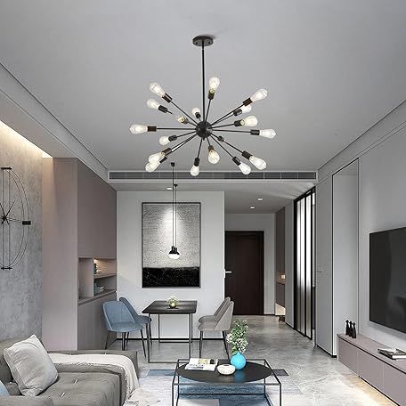 • JKLX Mid-Century Sputnik Chandeliers 18-Lights, Modern Semi Flush Mount Ceiling Light Fixture Industrial Retro Hanging Lamps for Kitchen Living Room Dining Bedroom Corridor, Black(Bulb Not Included)