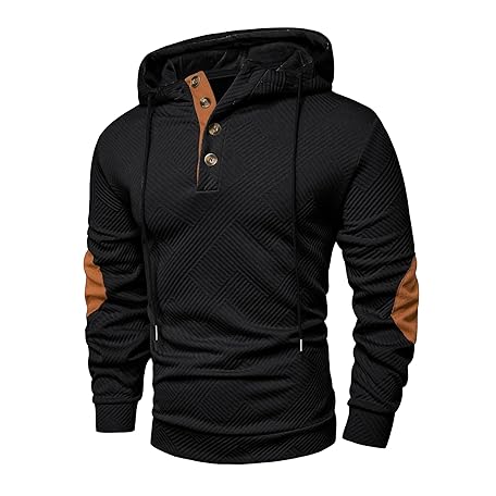 JMIERR Mens Hoodies Fall Casual Cotton Textured Long Sleeve Half Button Pullover Hooded Sweatshirts