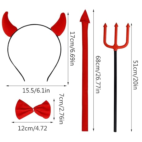 Sản phẩm Jmkcoz Halloween Devil Costume Set Devil Horn Headband Red Devil Tail Bowtie Devil Red Pitchfork Demon Cosplay Hair Hoop Accessories for Carnival Themed Party Prop Costume Decoration đang được bán với giá ưu đãi là $10.8455 tại nước Mỹ.