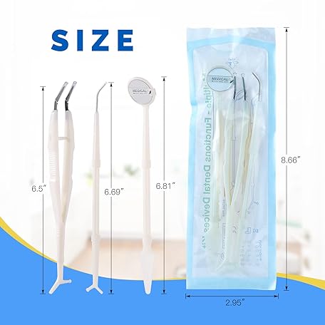 Thông tin sản phẩm JMU 20 Pack Disposable Dental Examination Kit, 3Pcs Basic Instruments Set, Sterile Packaging, Dental Mirror Explorer Probe Plier, Oral Cleaning Dentist Tools (3pcs a Set, 20 Sets)