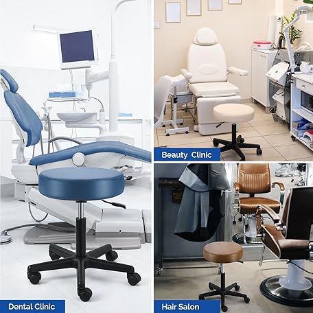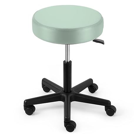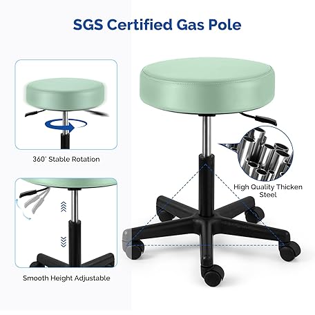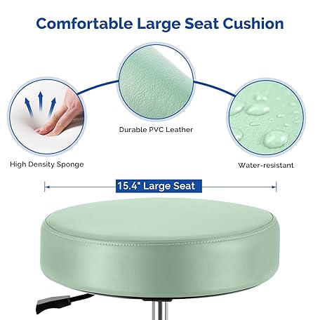 JMU Rolling Stool with Wheels, PVC Leather Large Seat Stool, 400lbs Weight Capacity, Heavy Duty Adjustable Height for Medical Tattoo Office Lab Dentists Healthcare(Mint Green)