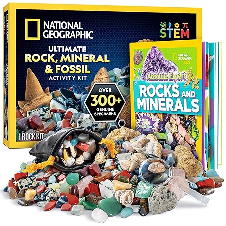 Thông tin sản phẩm JMW Sales, Inc. National Geographic Rock Collection Box for Kids – 300 Piece Rock Set with Real Gemstones, Crystals & Minerals - Includes Absolute Expert: Rocks & Minerals Full-Color Book (Amazon Exclusive)