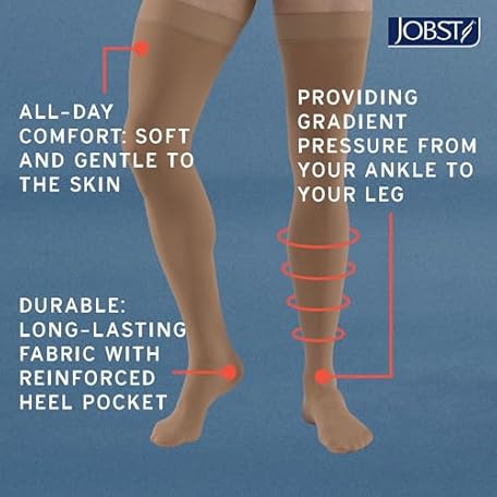 JOBST Relief 15-20 mmHg Compression Stockings, Thigh High Silicone Band, Closed Toe | Compression Socks for Women/ Men for Tired, Aching or Swollen Legs