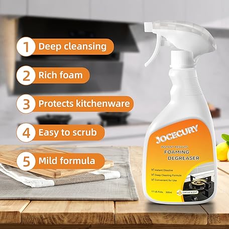 Thông tin sản phẩm Jocecury 500ML Kitchen Foam Cleaner, Multipurpose Grease Cleaner Spray for Pots, Pans, Surfaces & Appliances with Dual-Spray nozzle,No-rinse Formula