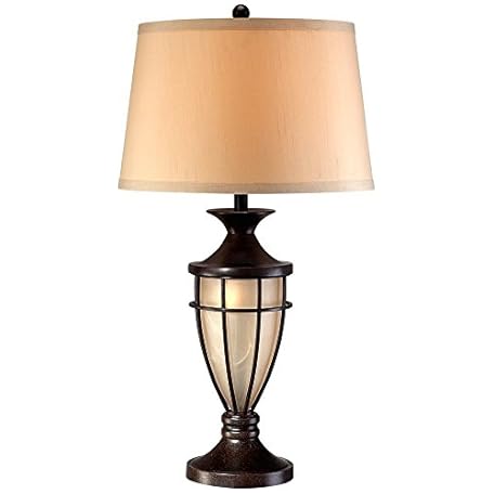 John Timberland Mission Style Table Lamp with Nightlight 33" Tall Champagne Glass Brushed Iron Cage Beige Fabric Drum Shade for Living Room Bedroom House Bedside Nightstand Home Office Entryway
