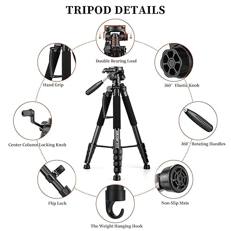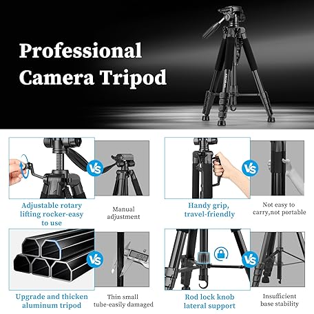 Thông tin sản phẩm JOILCAN Tripod Camera Tripods, 74" Tripod for Camera Phone Video Recording, Heavy Duty Cameras Tripod Stand, Professional Travel DSLR Tripods Compatible with Canon iPhone, Max Load 15 LB
