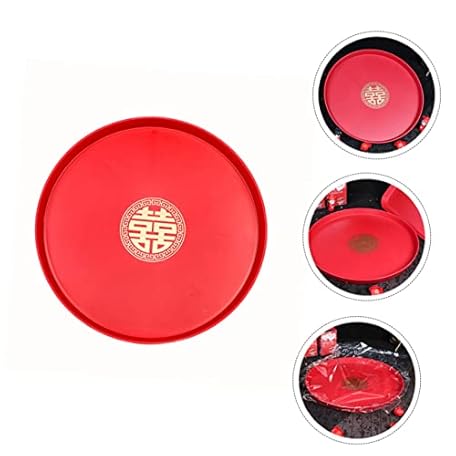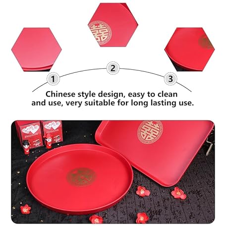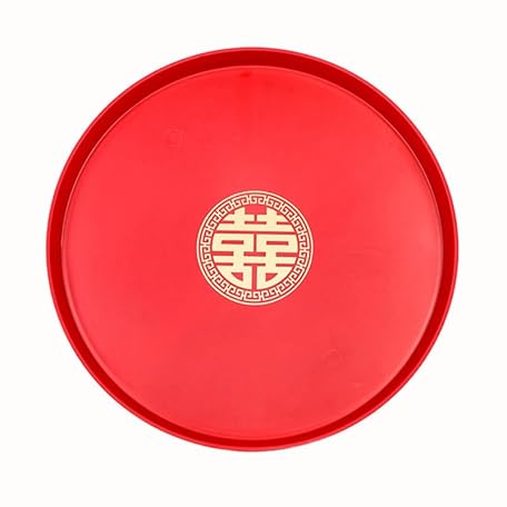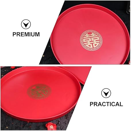 jojofuny Chinese Wedding Serving Tray Platter: Red Fruit Plate Round Tea Tray Large Plastic Snack Dishes for Chinese Traditional Wedding Decoration Supplies