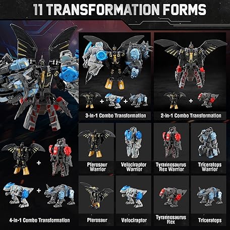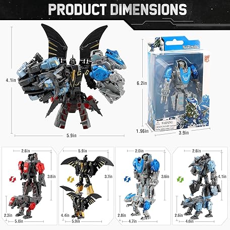 Thông tin sản phẩm JONEG Transforming Robot Dinosaur - 4-in-1 STEM Toy, 11 Shapes Transforming Toys for Kids, Ages 5-10, Black