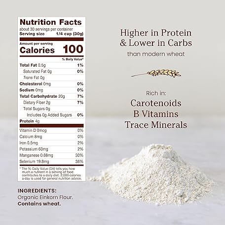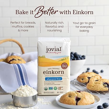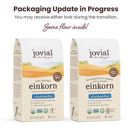 Thông tin sản phẩm Jovial Organic Einkorn Unbleached All Purpose Flour - Bread Baking Flour for Sourdough, High Protein, Non-GMO, Organic Pizza & Pasta, European Italian, Glyphosate Free - 32 Oz