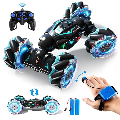 • Jovow 1:12 RC Stunt Car, 2.4GHz 4WD Remote Control Gesture Sensor Toy Cars, Double Sided Rotating Off Road Vehicle 360° Flips with Lights Music, Toy Cars for Boys & Girls Birthday